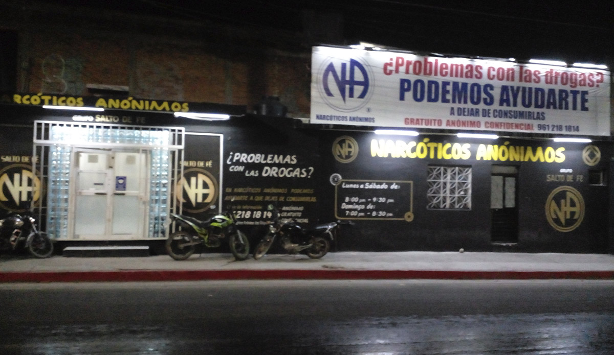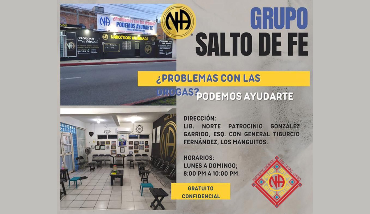 Sesionamos a la manera de NA, pertenecemos al Área "Chiapas Centro" de Narcóticos Anónimos, solo necesitas el deseo de dejar de consumir.
